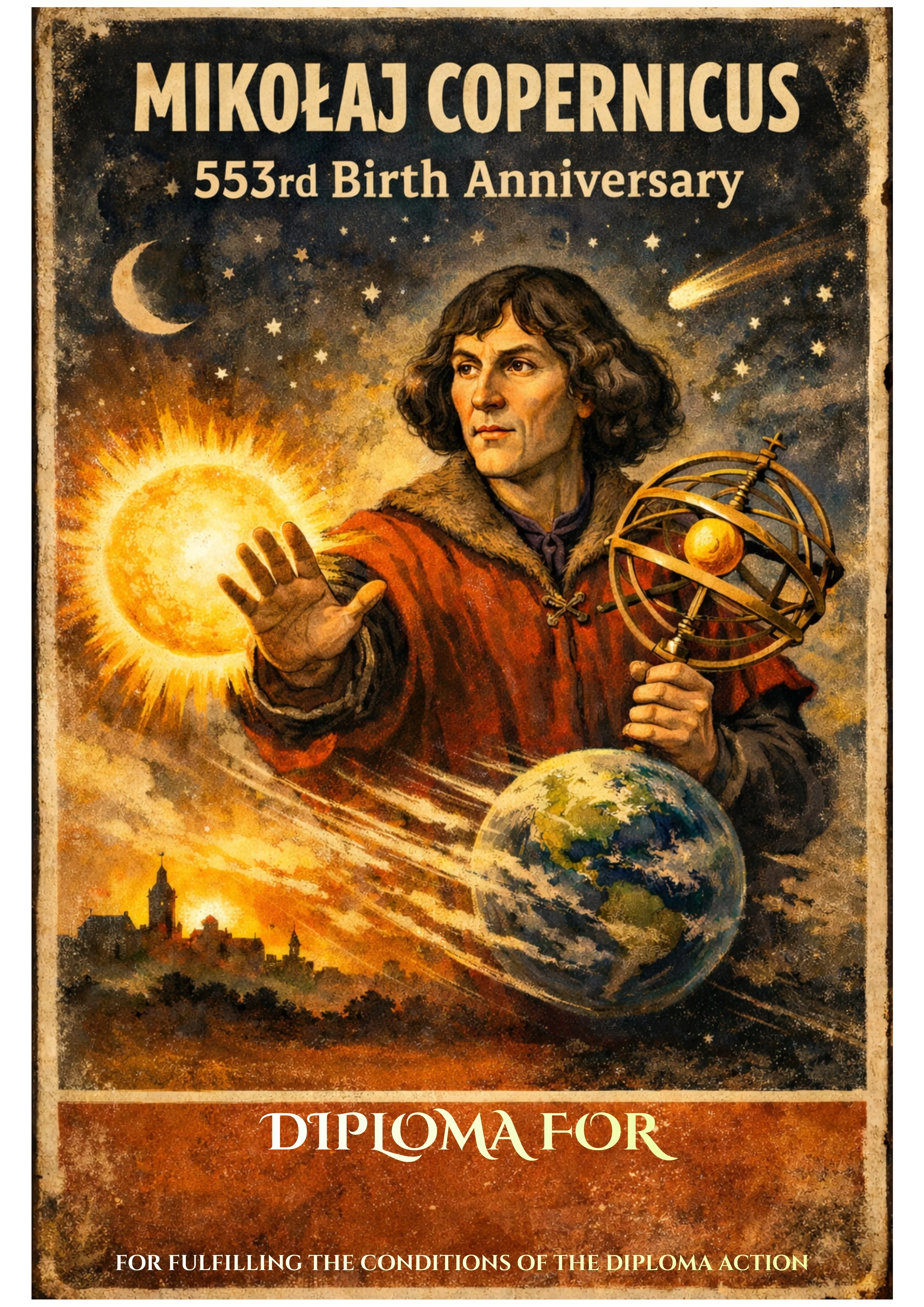 Akcja dyplomowa — start 19.02.2026 16.02.2026 • egzaminkf.pl • Dyplomy 553. Rocznica Urodzin Mikołaja Kopernika… Start: 19 lutego 2026, czwartek, godz. 00:00. Zakończenie: 25 lutego 2026, środa, godz. 23:59. 553. Rocznica Urodzin Mikołaja Kopernika