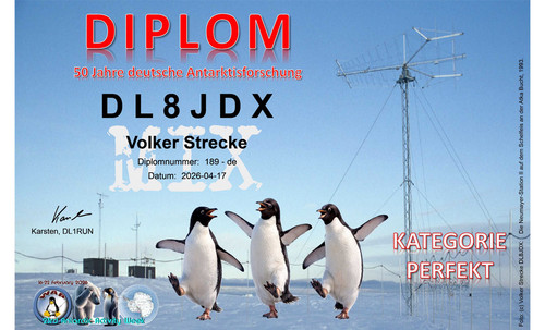 Do 30 kwietnia łączności z pięcioma stacjami specjalnymi (DAØANT, DM5ØANT, DP5ØANT, DA2ØØGVN i DM5ØGFS) zaliczane są do programu dyplomowego „50 Jahre deutsche Antarktisforschung” (50ANT).